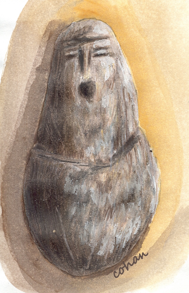 Water Goddess -these are based on ancient vessels, the mouth was likely a spout (if I remember correctly, can't find the book just now...) I feel these may rather resemble funerary masks, but I don't think that was the intention of the originals- the eyes and mouth may seem to be voids because they were openings in the vessel, or perhaps something was placed into the eye holes..